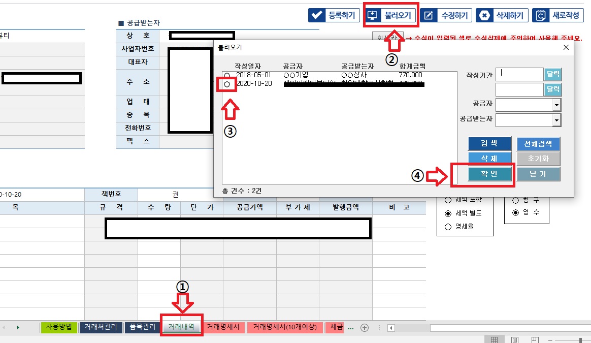 ÀÏ´Ü °Å·¡°¡ ¹ß»ýµÇ¾úÀ» ½Ã '°Å·¡³»¿ª'½ÃÆ®¿¡¼ ÇØ´ç °Å·¡°ÇÀ» ÀÔ·ÂÇÏ°í ¿À¸¥ÂÊ »ó´Ü 'µî·ÏÇϱâ' ¹öưÀ» ´·¯ÁÖ¼Å¾ß ÀúÀåÀÌ µË´Ï´Ù.