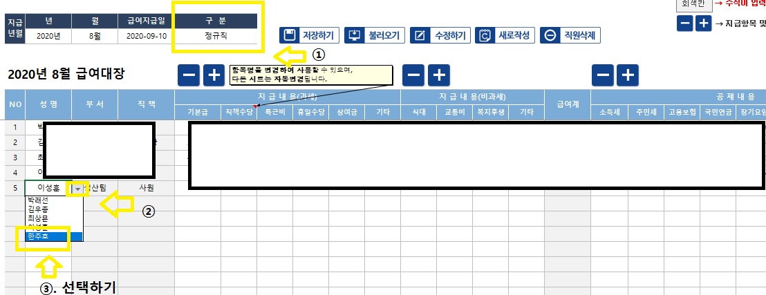Ç×»ó »õ·Î¿î Á÷¿øÀÌ ¿Í¼ [»ç¿øÁ¤º¸] ½ÃÆ®¿¡¼ »õ·Î¿î Á÷¿øÀ» ¾÷µ¥ÀÌÆ® ÇÏ½Ã°í ´ç¿ù ±Þ¿©´ëÀåÀ» ±Þ¿©ÀÔ·Â½ÃÆ®¿¡ ÀÔ·ÂÇϽǶ§