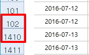 1. [ÁöÃâÀÔ·Â]½ÃÆ®¿¡ ÀÔ·ÂÇÑ µ¥ÀÌÅ͸¦ º¸¸é 102¹øÇà¿¡¼ 1410¹øÇàÀ¸·Î ¹Ù·Î ³Ñ¾î°¡´Â °ÍÀ» º¼¼öÀÖ½À´Ï´Ù.