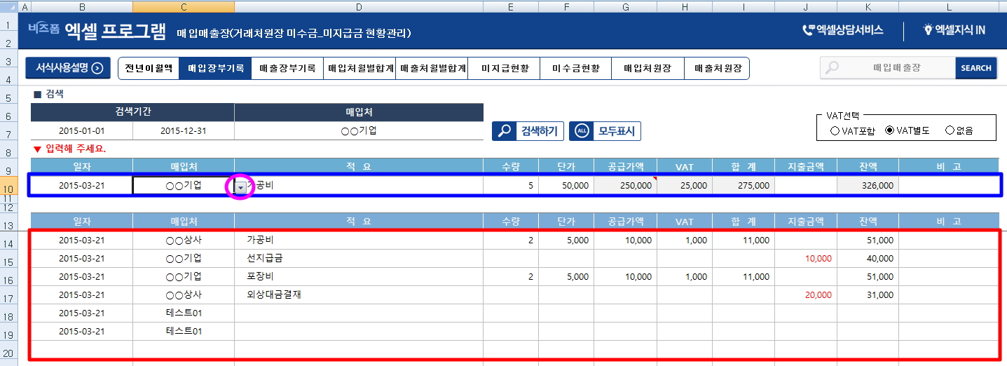 Á÷Á¢ ÀÔ·ÂÇϼż »ç¿ëÇÏ½Ç °æ¿ì [¸ÅÀÔ¸ÅÃâÀü³âÀÌ¿ù¾×]½ÃÆ®¿¡ µî·ÏÇÑ °Å·¡Ã³¸í°ú µ¿ÀÏÇØ¾ßÇÏ¸ç ¸¸ÀÏ ÇÑÀÚ¶óµµ Æ²¸®¸é µ¥ÀÌÅÍ ÃßÃâÀ» Çϰųª Àܾװè»ê¿¡ ¿À·ù°¡ ¹ß»ýÇÕ´Ï´Ù.