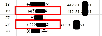 ¶ÇÇÑ [°Å·¡Ã³°ü¸®]½ÃÆ®¿¡ (ÁÖ)°¡ ´Ù¸£°í »ç¾÷ÀÚµî·Ï¹øÈ£°¡ ´Ù¸¥ "Áø**¼³"ÀÌ µÎ°³°¡ ÀÖ½À´Ï´Ù.