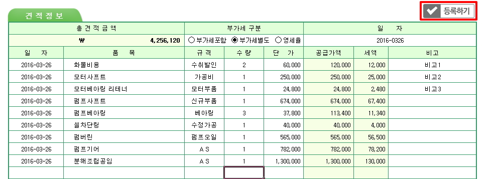 [°ßÀûÀÔ·Â]½ÃÆ®¿¡ µ¥ÀÌÅÍ ÀÔ·Â ÈÄ "µî·ÏÇϱâ"¸¦ ´©¸£¼Å¾ß