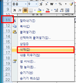 [µ¥ÀÌÅÍ °ü¸®]½ÃÆ®¿¡¼ »èÁ¦ÇÏ¼Å¾ß ÇÏ´Â "Çà¹øÈ£ ¿À¸¥ÂÊ ¸¶¿ì½º" -> "»èÁ¦" ´©¸£½Ã¸é ¼±ÅÃÇÑ ÇàÀÌ »èÁ¦ µË´Ï´Ù.