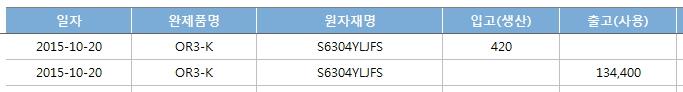 ¿ÏÁ¦Ç° "OR3-k" »ý»êÀ» 420°³ µî·ÏÇϼż 320*420 ÀÌ µÇ±â¶§¹®¿¡ "S6304YLJFS"»ç¿ëÀÌ 134,400°³°¡ µÇ´Â °ÍÀÔ´Ï´Ù.