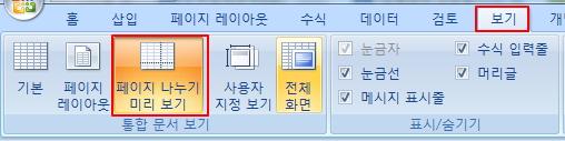 [±Þ¿©´ëÀå]¼½ÄÀÌ ÁÙ¾îµç °ÍÀÌ ¾Æ´Ï¶ó ¿¢¼¿ ¸Þ´º¿¡ "º¸±âÅÇ"-"ÆäÀÌÁö³ª´©±â¹Ì¸®º¸±â"°¡ ¼±ÅõǾîÀֱ⠶§¹®ÀÔ´Ï´Ù.
