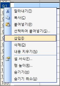 Çà »ðÀÔÀÇ °æ¿ì, ÇàÀ» Àüü ¼±ÅÃÇÏ½Ã°í ¿À¸¥ÂÊ ¸¶¿ì½º Ŭ¸¯ ÈÄ, »ðÀÔ ¸Þ´º¸¦ Ŭ¸¯ÇÏ½Ã¸é µË´Ï´Ù.