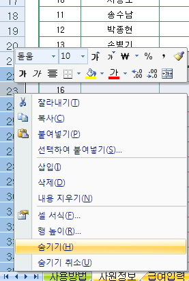 ¿¢¼¿ Çà ¼û±â±âÀÇ °æ¿ì ¼û±â°íÀÚ ÇÏ´Â ÇàÀ» ¼±ÅÃÇÏ½Ã°í ¿À¸¥ÂÊ ¸¶¿ì½º¸¦ Ŭ¸¯ÇϽøé