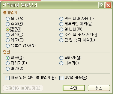 º¹»çÇØ¼ ºÙ¿©³ÖÀ¸½Ç¶§´Â ¿À¸¥ÂÊ ¸¶¿ì½º [¼±ÅÃÇÏ¿© ºÙ¿©³Ö±â] ¹öưÀ» Ŭ¸¯ ÈÄ [°ª]À» ¼±ÅÃÇÏ½Ã°í ºÙ¿©³ÖÀ¸¼Å¾ß ¿À·ù¹ß»ý È®·üÀÌ ³·½À´Ï´Ù.