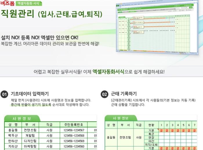 À§¿Í °°ÀÌ Á÷¿ø Á¤º¸¸¦ ÀÔ·ÂÇÏ°í °ü¸®ÇÒ ¼ö ÀÖ´Â ¿¢¼¿ ÀÚµ¿È ¼½ÄÀ» Á¦°øÇØ µå¸®°í ÀÖÀ¸¸ç