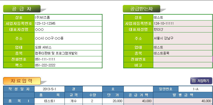 ÀÚ·áÀÔ·Â : ÀÛ¼ºÀÏÀÚ ¹× ǰ¸ñ/±Ô°Ý/¼ö·®/´Ü°¡µîÀ» ÀÔ·ÂÀ» Çϸé, °ø±Þ°¡°Ý°ú ¹ßÇà±Ý¾×Àº ÀÚµ¿À¸·Î °è»êµÇ¸ç, " ÀúÀåÇϱâ"¸¦ ´©¸£¸éµË´Ï´Ù