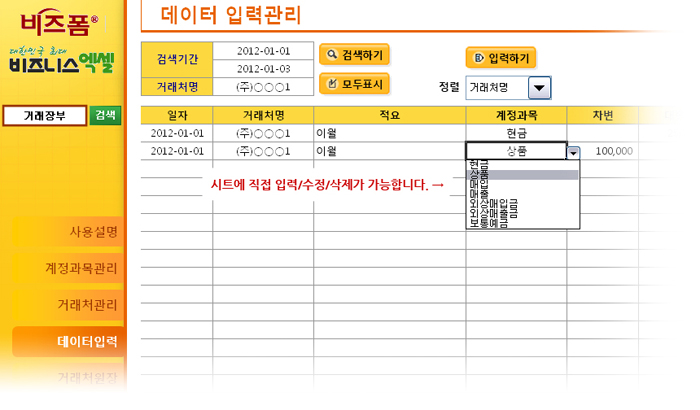 (°Å·¡Ã³º°, °èÁ¤º°·Î µû·Î ÀÔ·ÂÇÏ¼Å¾ß ÀÌÈÄ °Å·¡Ã³¿øÀåÀ̳ª, °èÁ¤º°¿øÀå¿¡¼ Á¤È®ÇÑ µ¥ÀÌÅ͸¦ È®ÀÎ ÇÏ½Ç ¼ö ÀÖ½À´Ï´Ù.)