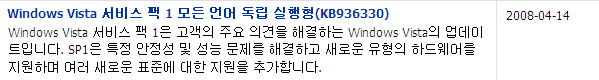 >> Windows Vista ¼ºñ½º ÆÑ 1 ¸ðµç ¾ð¾î µ¶¸³ ½ÇÇàÇü(KB936330)