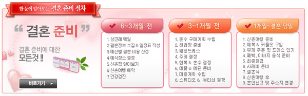 ÇöÀç ºñÁîÆû¿¡¼ °áÈ¥ 6°³¿ùÀüºÎÅÍ ´çÀϱîÁö Áغñ°úÁ¤ÀÌ »ó¼¼È÷ ¼Ò°³µÇ¾î ÀÖ´Â Äڳʸ¦ ¾È³»Çص帮°íÀÚ ÇÕ´Ï´Ù.